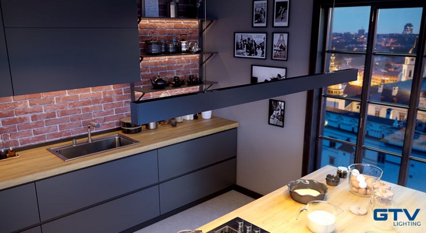 Dla wizualnego oddzielenia salonu od kuchni dobrym rozwiązaniem będzie wykorzystanie taśmy LED. Aby oświetlenie kuchni posłużyło nam na dłużej, warto wybrać trwałą i funkcjonalną obudowę dla taśm. Firma GTV wprowadziła na rynek serię nowych profili na taśmy LED, które można zamontować w płytach gipsowo-kartonowych.